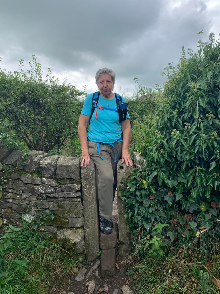 Off we go and once out of the village, we join footpaths again. Derbyshire walks do not appear to be designed for anyone who is either disabled or overweight. Styles are high, gates are narrow and have very tight springs and the strangest of all are the tiny gaps through big stones which walkers must squeeze through (see picture above).