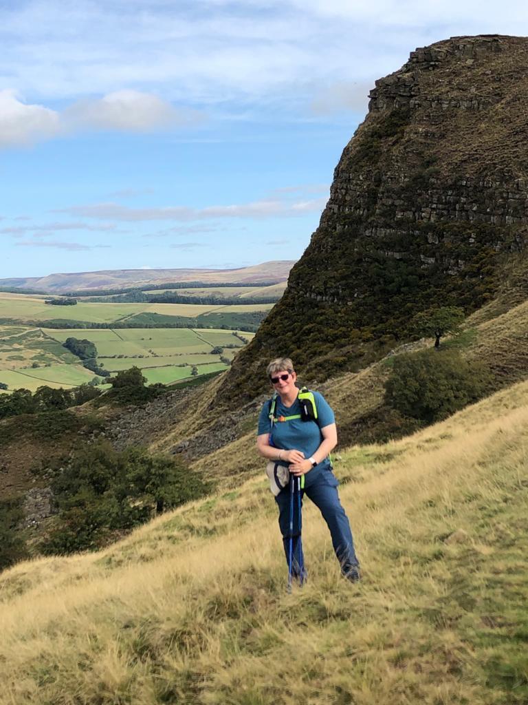 We find a lovely parking space with plenty of depth to fit all of Ethel within the lines, put on our walking boots and rucksacks and off we go. We don’t need a map as Mel knows the way and very soon, I can see Back Tor in the distance.